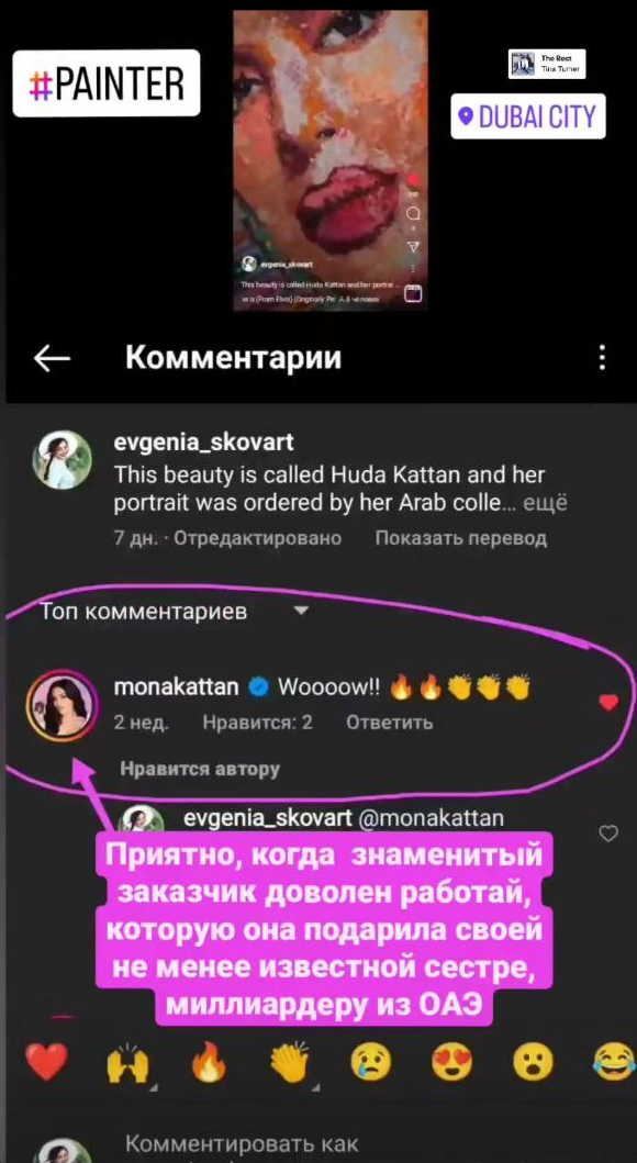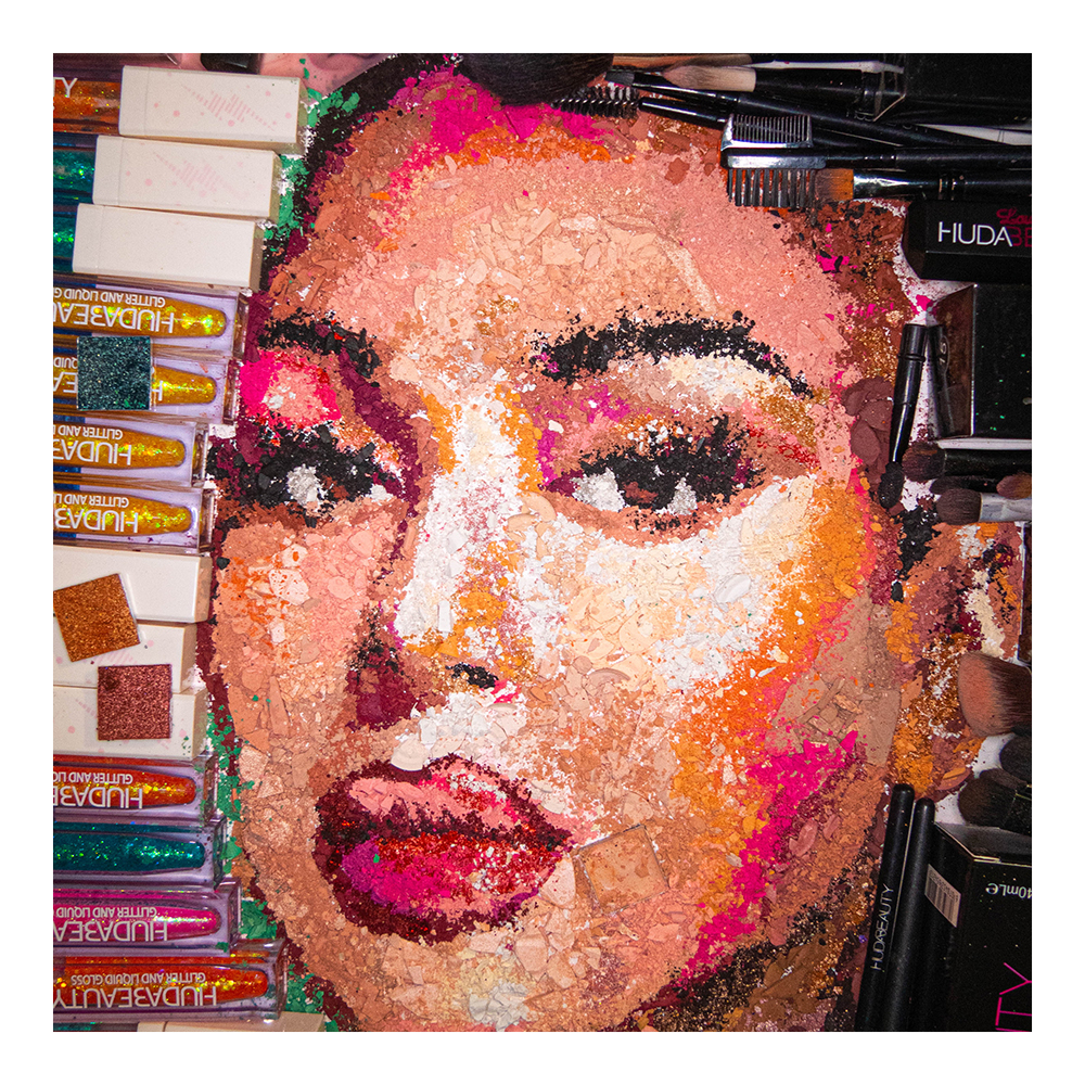 Это Худа Каттан - самая влиятельная бизнес леди из ОАЭ. Её сестра, Мона Каттан, заказала портрет сестры из косметики собственного бренда. Косметику для этой работы специально отправили мне из ОАЭ. Именно после этого заказа, ко мне стали обращаться за работами из ОАЭ.