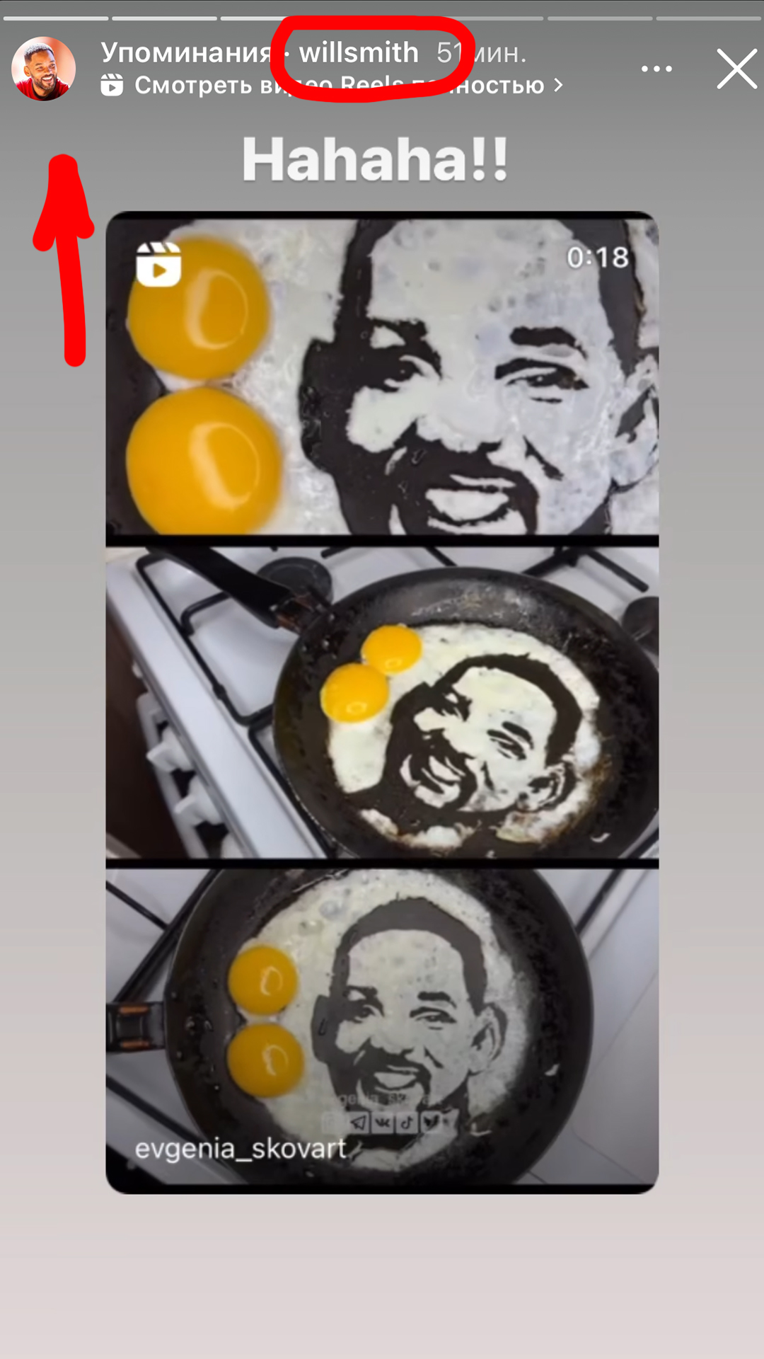 Яичница из Голивудского актёра Уилла Смита! Видео, где я в процессе приготовления завтрака жарю портрет - набрало более 518 000 просмотров в инстаграм! Герой фильма "Люди в чёрном" сделал репост у себя в инстаграм, сопроводив видео смехом "Ha-ha-ha"!