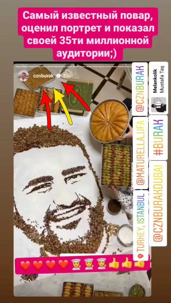 Портрет известного повара БУРАКа из турецких сладостей заказала турецкая кондитерская фабрика «Матурелла», которая решила заявить о себе в сети интернет. Заявить о себе сладкому бренду удалось!
