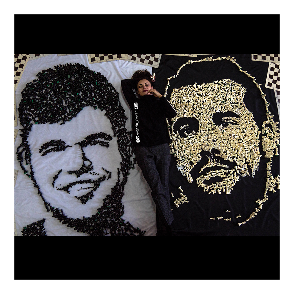 В портретах из шахмат было использовано более 2000 фигур! Многие СМИ из разных стран рассказали о моей работе!